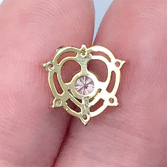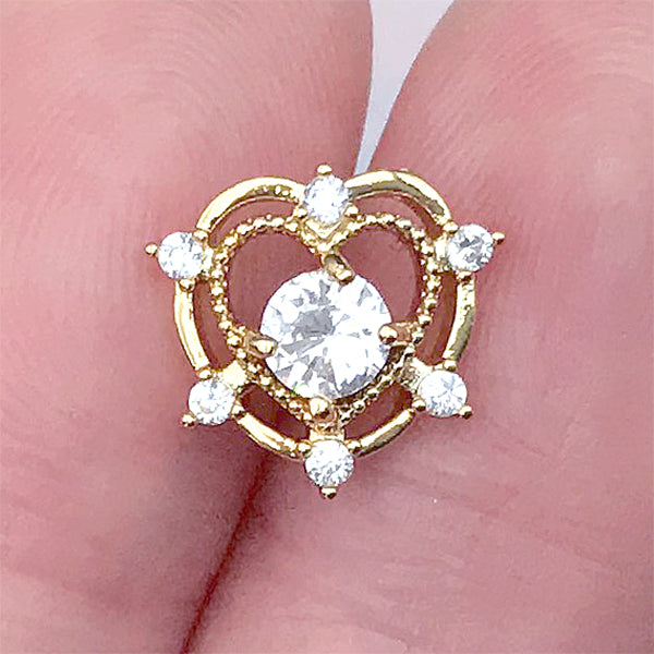 Sparkle Heart Nail Charm with Rhinestones | Magical Girl Nail Art | Luxury Embellishment for Kawaii Resin Jewelry DIY (1 piece / Gold / 11mm x 10mm)
