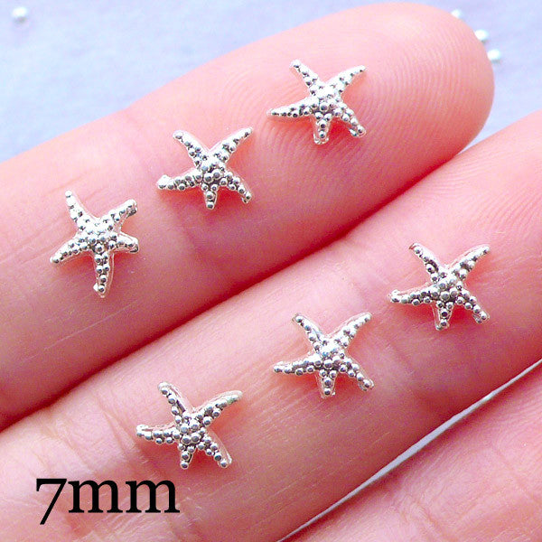 Starfish Nail Charms | Sea Star Floating Charms | Tiny Mini Metal Cabochon | Marine Life Nail Art | Kawaii Crafts | Living Locket Supplies | Resin Fillers | Scrapbook Embellishments (6pcs / Silver / 6.5mm x 5.2mm)