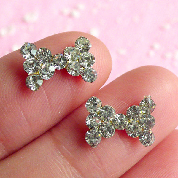 Tiny Bow Bowtie Cabochon Set (2pcs) (Clear Rhinestones) Fake Miniature Cupcake Topper Earring Making Nail Art Decoration Scrapbooking NAC019