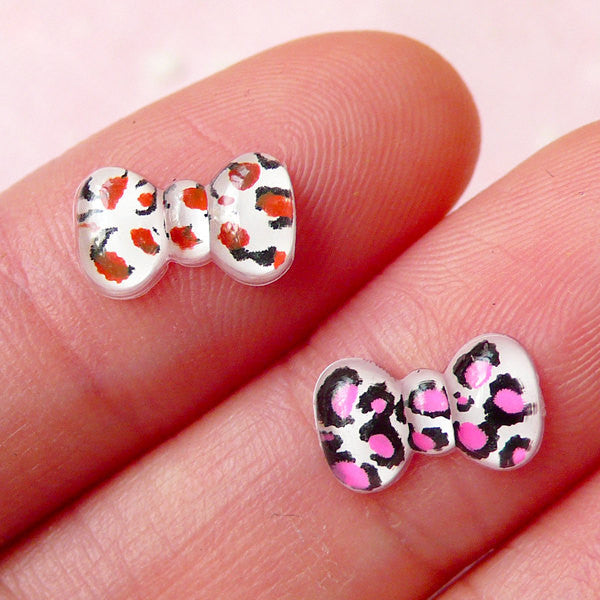 CLEARANCE Tiny Bow Bowtie Cabochon Set w/ Leopard Pattern (2pcs / 10mm x 6mm) Fake Miniature Cupcake Topper Earring Making Nail Art Decoration NAC137