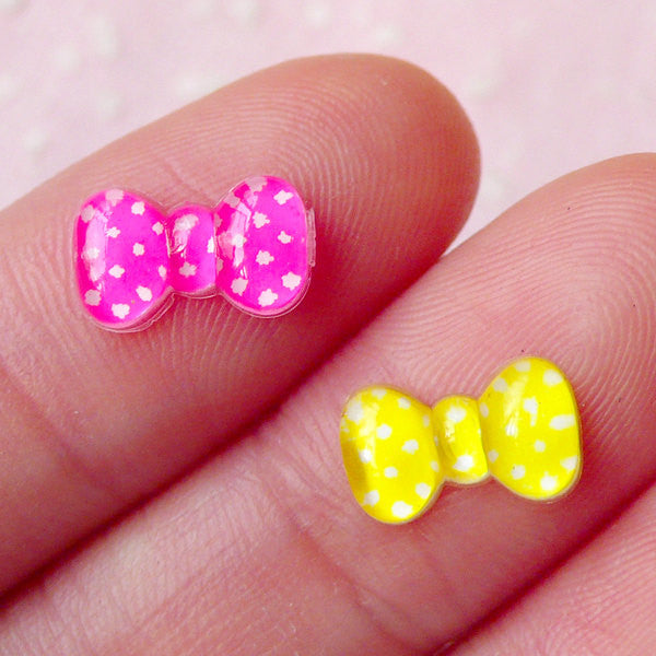 CLEARANCE Tiny Bow Bowtie Cabochon w/ Polka Dot Pattern (2pcs / 10mm x 6mm) Fake Miniature Cupcake Topper Earring Making Nail Art Decoration NAC138