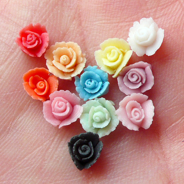 Tiny Flower Cabochon Set (11pcs) (5mm) Fake Miniature Cupcake Topper Earring Making Nail Art Decoration NAC037