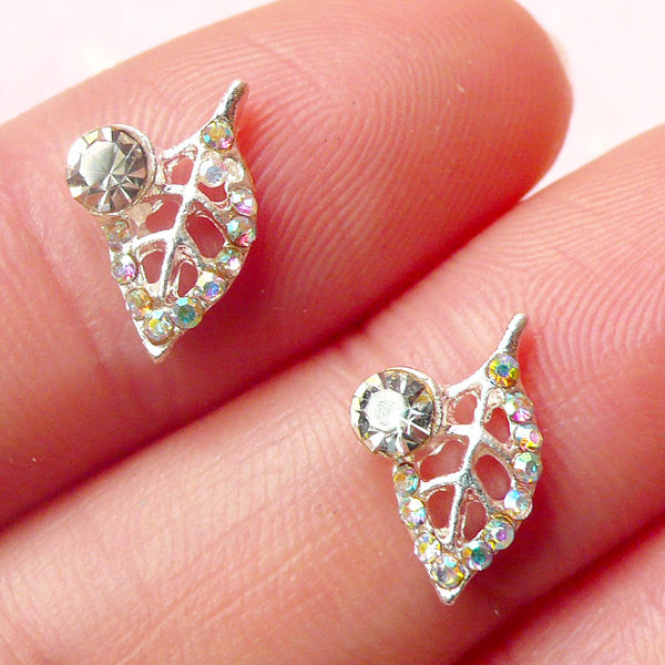Tiny Leaf Leaves Cabochons (2pcs) (Clear and AB Clear Rhinestones) Fake Miniature Cupcake Topper Earring Making Nail Art Decoration NAC115