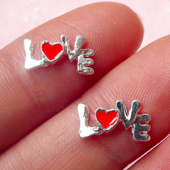 Tiny LOVE Cabochon (2pcs) (11mm / Red and Silver) Kawaii Fake Miniature Cupcake Topper Valentines Earring Making Nail Art Decoration NAC132