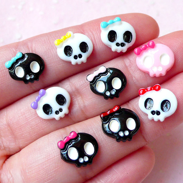 Tiny Skull Head Cabochon w/ Bow (3pcs by Random / Pink White Black) Skeleton Nail Art Nail Decoration Earrings Making Scrapbooking NAC153