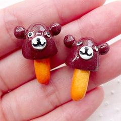 Sliced Bread Cabochons with Bear Pattern (2pcs / 13m...