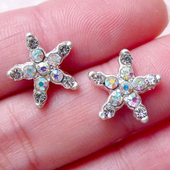 Tiny Starfish Cabochon w/ AB Clear Rhinestones (2pcs...