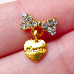 Dangling Nail Art / Tiny Bow with Heart Cabochon (1 ...