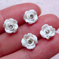 Mini Rose Cabochon w/ Clear Rhinestones (4pcs / 8mm ...