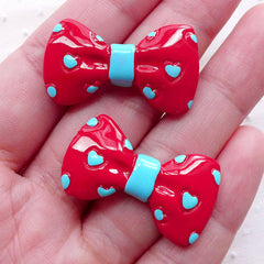 CLEARANCE Red Bowtie Cabochons w/ Heart Pattern (2pc...