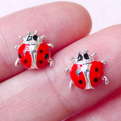 Tiny Beetle Lady Bug Cabochon (2pcs) (9mm / Silver &...