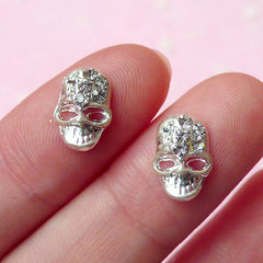 Tiny Silver Plated Skull Skeleton Cabochon with Clea...