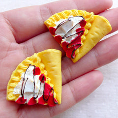 Miniature Strawberry Crepe Cabochons (2pcs / 37mm x ...