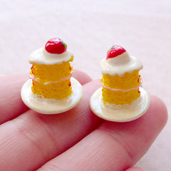 Strawberry Sponge Cake Cabochons in Cube Shape | Min...