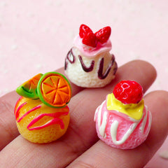 Ice Cream Scoop Resin Cabochons with Fruit Topping (...