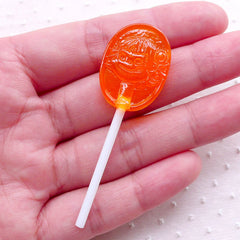 CLEARANCE Orange Candy Lollipop Cabochon w/ Girl Fac...