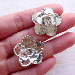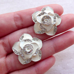 Beautiful rose flower enamel cabochon with rhinestones! Perfect to decorate your phone case, use with scrapbooking, collage, make floral jewellery and any other kinds of...