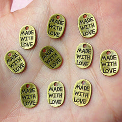 Antique Bronzed Made With Love Charms Quantity: 10 pcs Color: Bronze Size: approx. 0.8cm (W) x 1.1cm (H) Material: Alloy