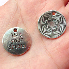 Tibetan Silver Live Your Dream Charms Quantity: 3 pcs Color: Tibetan Silver Size: approx. 2cm (Diameter) Material: Alloy