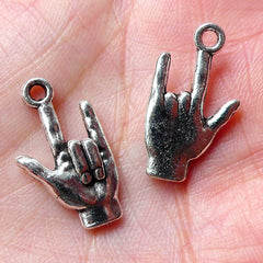 I love you hand sign charms in Tibetan silver tone! Good for jewelry making like earrings, bracelet, necklace, etc as well as zipper pull, bookmark,...