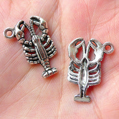 Lobster charms in Tibetan silver tone! Good for jewelry making like bracelet, necklace, etc as well as zipper pull, bookmark, key chain, handbag charm, wine...