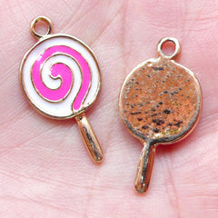 Super cute lollipop charms in pink and white enamel! Good for jewelry making like earrings, bracelet, necklace, etc as well as zipper pull, bookmark, handbag...