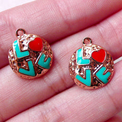 Beautiful love charms in blue green and red enamel! Good for jewelry making like earrings, bracelet, necklace, etc as well as zipper pull, bookmark, handbag...
