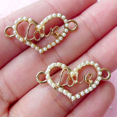 Love heart connector charm in golden tone with faux pearl! Good for jewellery making like earrings, bracelet, necklace as well as zipper pull, bookmark, handbag...