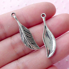 Long leaf charm in Tibetan silver tone! Good for jewelry making like earrings, bracelet, necklace as well as zipper pull, bookmark, keychain, bag charm, wine...