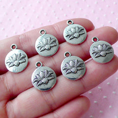 Lotus tag charms in Tibetan silver color! Good for jewelry making like earrings, bracelet, necklace as well as zipper pull, bookmark, keychain, bag charm, wine...