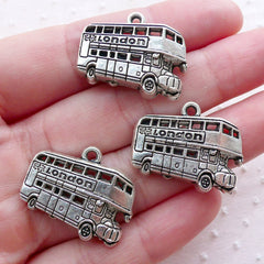 London bus charms in Tibetan silver tone! Good for jewelry making like earrings, bracelet, necklace as well as zipper pull, bookmark, handbag charm, keyring, wine...