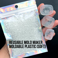 Reusable mold maker. It's soft and shapeable like clay when heated, and hard but flexible once cool down. It's reusable, just heat it up again and it will become soft...