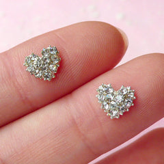 Tiny Heart Cabochon (2pcs) (Silver w/ Clear Rhinesto...