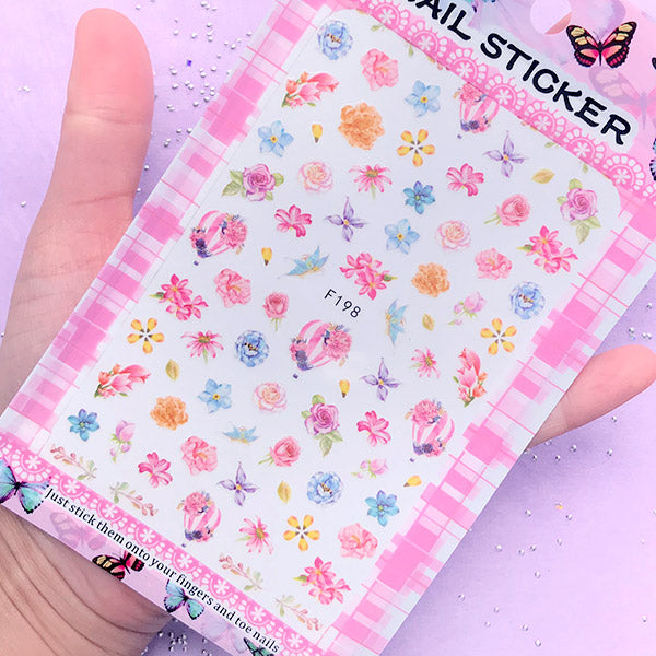 Beautiful flower and hot air balloon sticker for nail art or used as filling materials for resin art.
