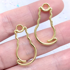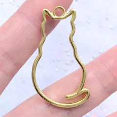 Cat Sitting Open Bezel Charm | Cute Pet Deco Frame f...