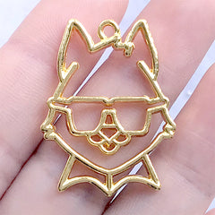 Dog with Eyeglasses Open Bezel Charm | Kawaii Animal...