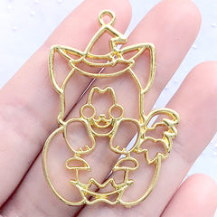 Witch Puppy with Halloween Pumpkin Open Bezel Charm ...
