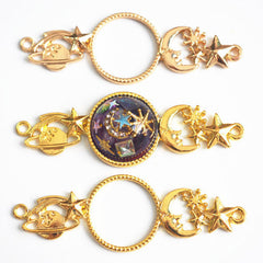 Planet Saturn Star Moon Open Bezel Connector Charm w...