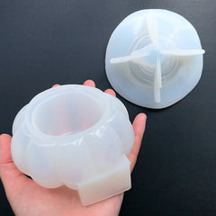 Halloween pumpkin house with witch hat trinket box silicone mold. No releasing agent is needed, finished work can be easily pop out from the mold....