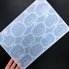 Halloween pumpkin silicone mold assortment. No releasing agent is needed, finished work can be easily pop out from the mold. Excellent for UV resin, epoxy resin...