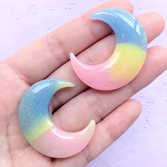 Pastel Rainbow Gradient Moon Cabochons | Shimmer Moo...