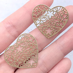 CLEARANCE Filigree Hollow Heart Charm with Floral Pa...
