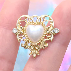 Baroque Heart Charm with Pearls and Rhinestones | Fi...