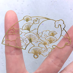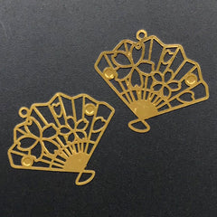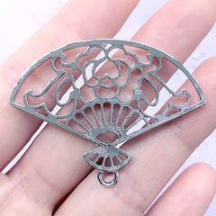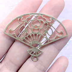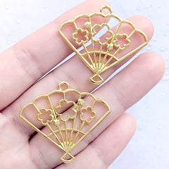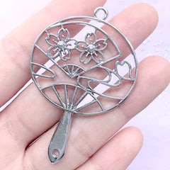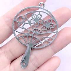 Sakura Hand Fan Open Bezel Charm | Cherry Blossom Ha...