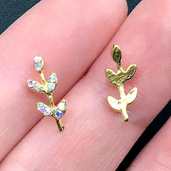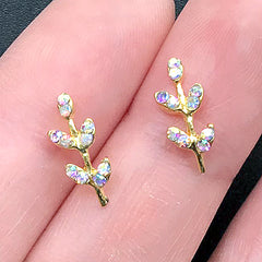 Tiny Leaf with Rhinestone Embellishments for Nail Ar...