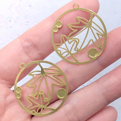 Maple Leaf Circle Open Bezel Pendant | Round Floral ...