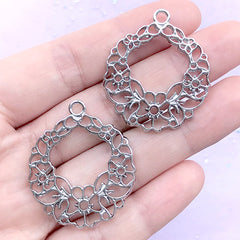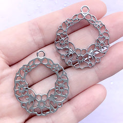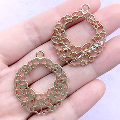 Flower Wreath Circle Open Bezel Charm | Floral Deco ...