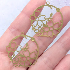Sakura Branch Circle Open Back Bezel Charm | Round C...