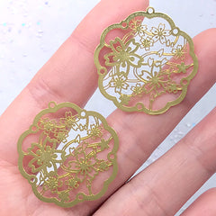 Plum Flower Open Bezel | Plum Blossom Charm | Prunus...