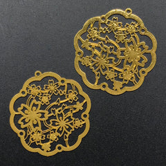 Round Plum Blossom Open Bezel Charm | Floral Pendant...